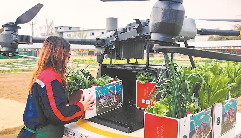 春菜“坐”上无人机 从田间到站点仅30分钟