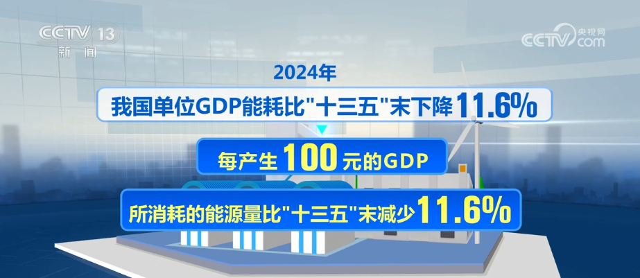 2024年,我国单位GDP能耗比“十三五”末下降11.6%。也就是说每产生100元的GDP,所消耗的能源量比“十三五”末减少了11.6%,能耗下降的同时,另一个指标的水平却提高了——主要资源产出率却提高了12%。