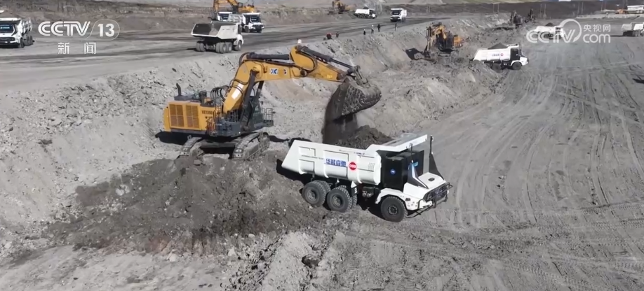 这是在内蒙古伊敏一个露天矿场,只见一辆辆巨大的矿卡有条不紊地排队运送土石。但是这个矿场与传统露天矿有些不同,如此巨大的矿卡并没有发出震耳欲聋的轰鸣声,仿佛就是一个静音的“钢铁丛林”,而且没有看到一个司机。这究竟是未来工业文明的实景,还是《流浪地球》的穿越特效?
