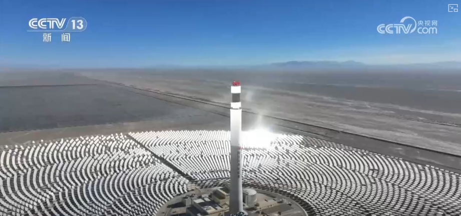 万米高空感知着这片地区的改变。在库布齐沙漠,2022年这里还是一片荒芜之地,如今,长出了一片片“蓝色海洋”;在甘肃,三万面镜子点亮了这片荒漠,它们可以帮助存储起热量,让光伏也能实现全天发电。在西藏,海拔5000多米的雪域高原上,几十个“大风车”正迎风而立。
