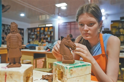 “C—L—A—R—A”,克拉拉将自己的名字刻在了陶俑底部。“参观兵马俑、亲手做一件陶俑,是难忘的经历。这趟旅行,给我留下深刻的文化记忆。”克拉拉说。