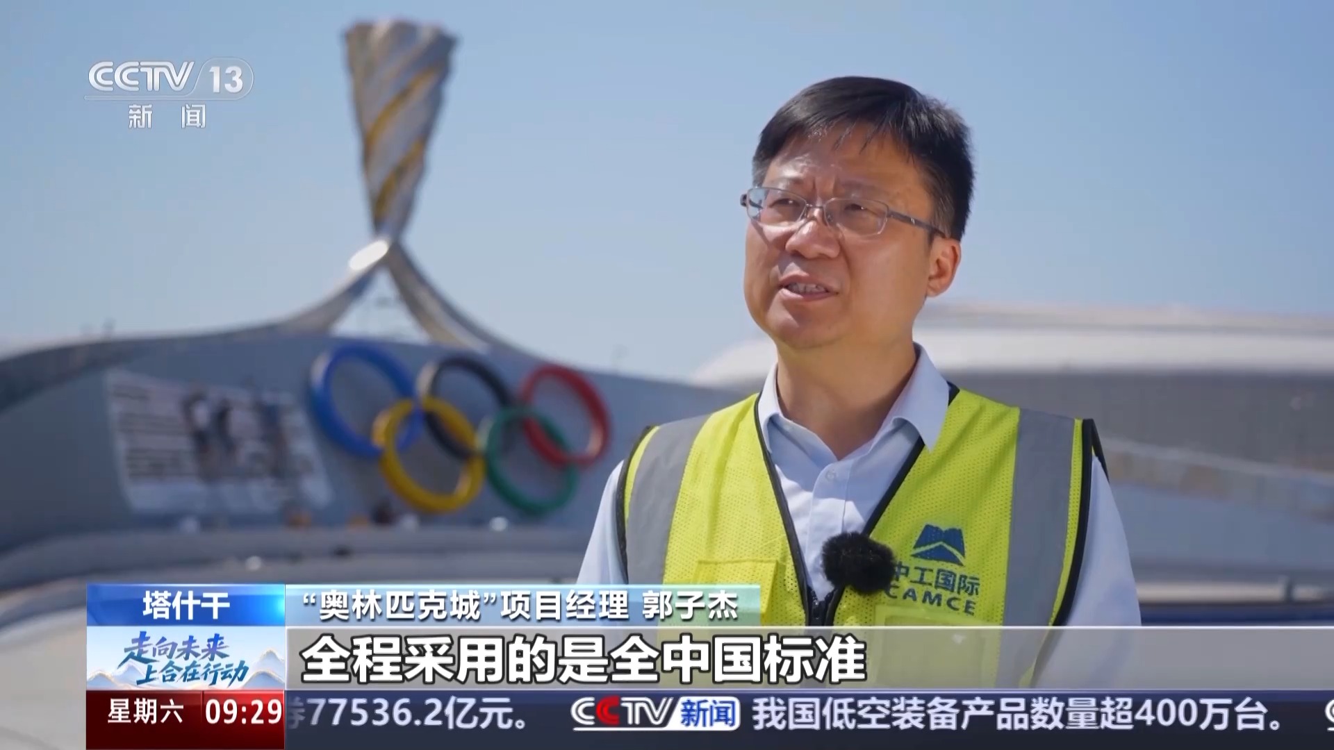 总台报道员 伊利亚·巴耶夫:几年前这里还是一片荒地,如今一座世界级工程在约100公顷的土地上拔地而起,这里就是中亚首座 “奥林匹克城”。