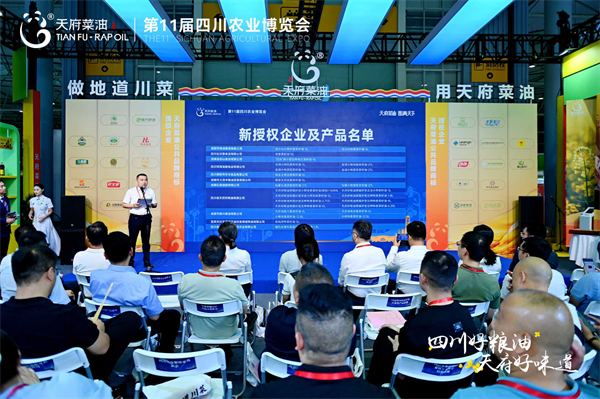 “聚力三链同构、共建天府粮仓”,9月4日第十一届四川农业博览会在成都世纪城新国际会展中心成功开幕。展会期间,“天府菜油”省级粮油区域公共品牌授牌仪式隆重举行, 11家授权企业的26个产品获得品牌授牌。至此,全省获得省级粮油区域公共品牌“天府菜油”使用授权的产品已达73个,共26家企业。