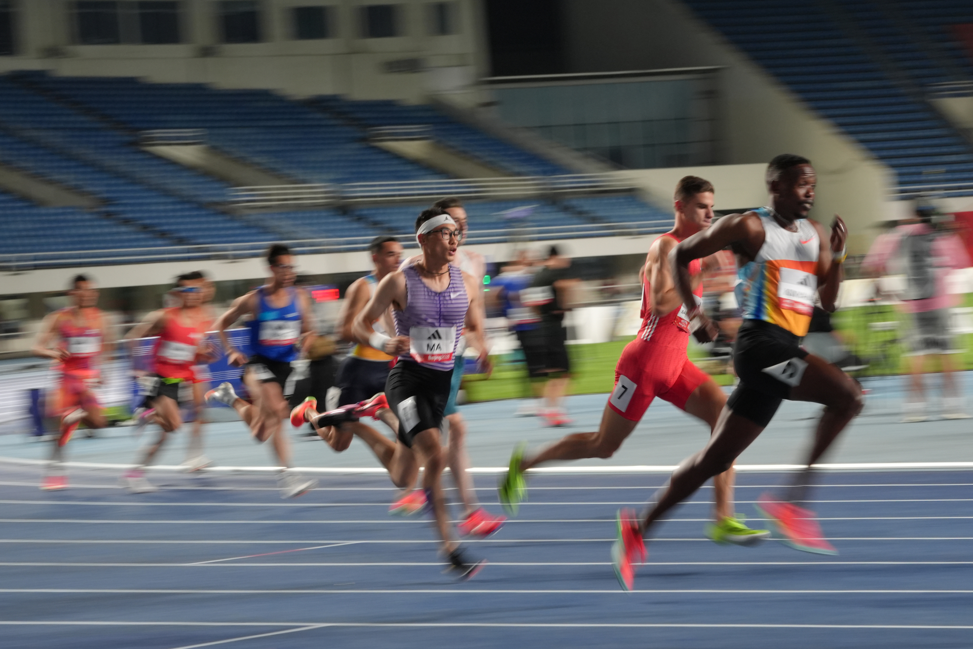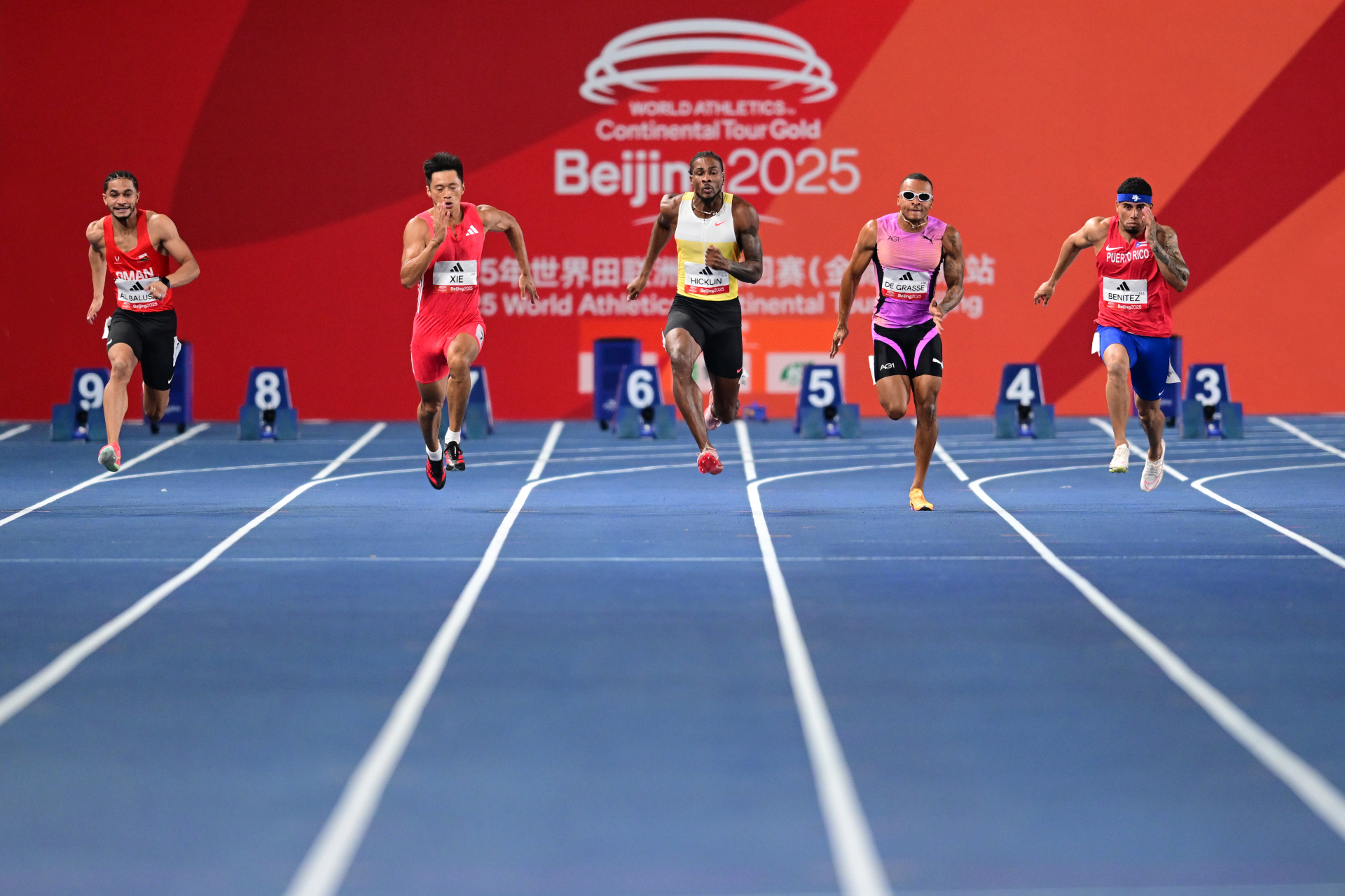 9项径赛项目的竞争更为激烈,有8项冠军是由外国选手获得的。在备受瞩目的男子100米“飞人大战”中阿曼选手阿里·巴卢希以10秒09夺冠。谢震业获得第四名,创造了10秒21的个人赛季最佳成绩。