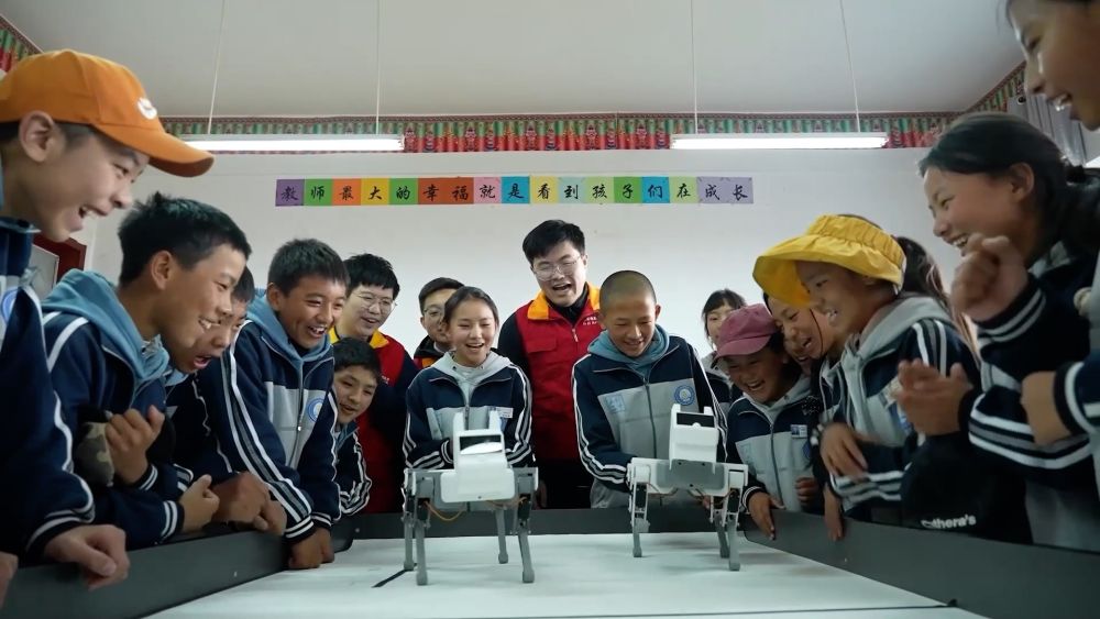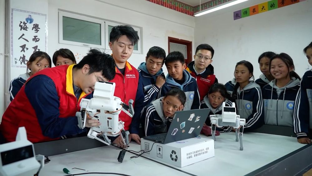 国家电网杭州供电公司“点亮玉树”公益团队联合青海省玉树市第二民族中学开展“AI教育”计划,志愿者为孩子们带去了丰富有趣的人工智能课程,指导他们完成智能机器狗的组装和编程。