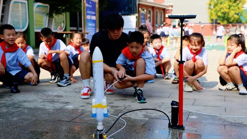 在湖南省常德市,武陵区第一小学组织了一场主题为“AI筑梦,科技护国”的科创节活动,学校精心设置了“火箭发射”“机械手臂”“空气大炮”等11个科技体验项目,将趣味性与知识性融为一体。