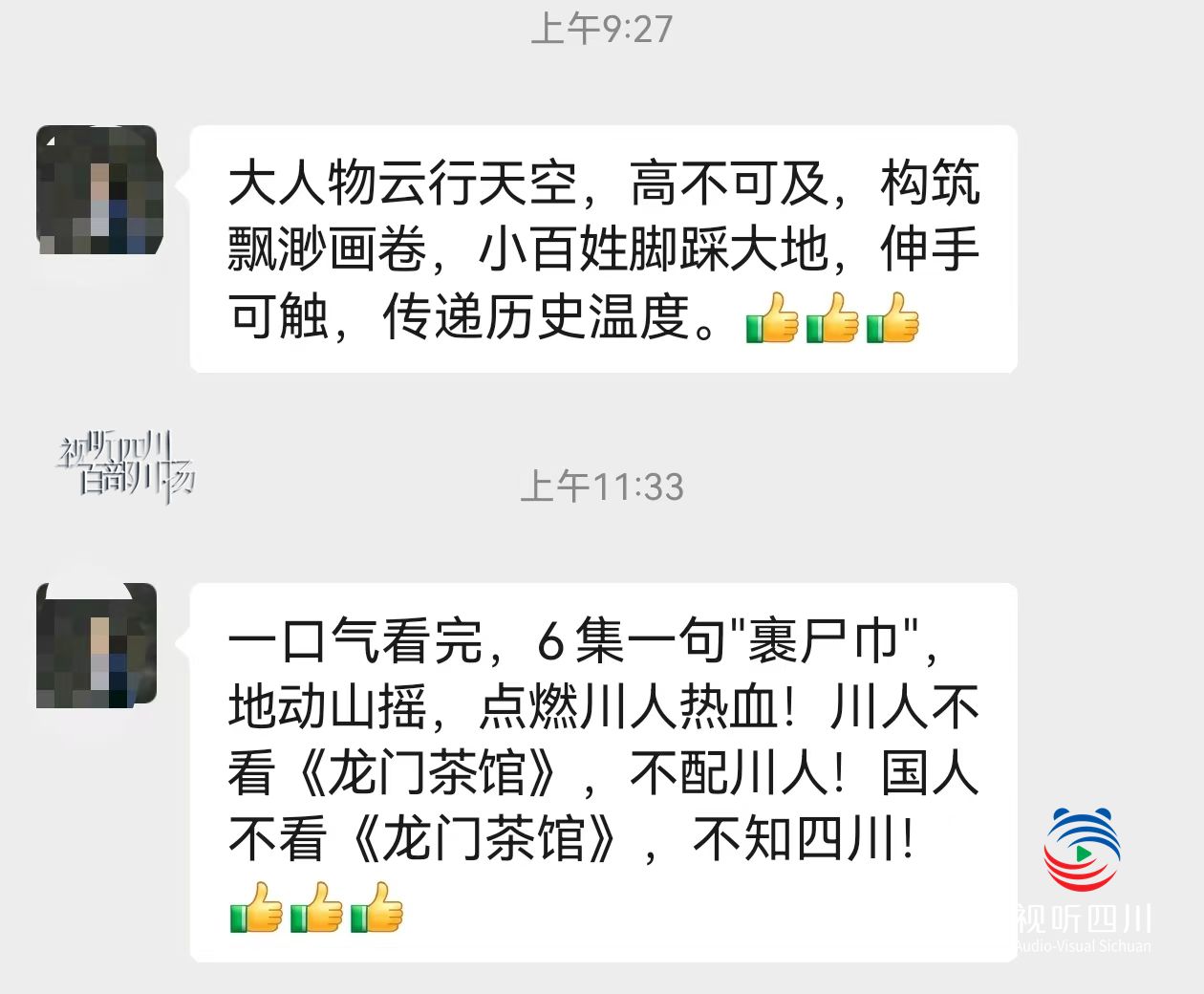 《龙门茶馆》上线后,立即在观众中引发强烈反响。“川人不看《龙门茶馆》,不配川人!国人不看《龙门茶馆》,不知四川!”成为观众们的共同心声。
