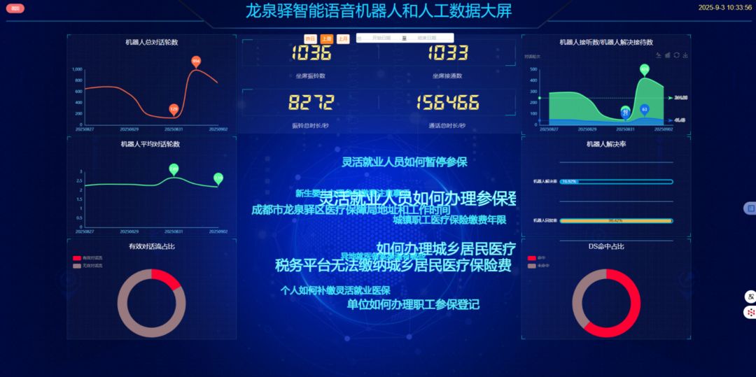 数据显示,自“蓉医通”热线运行以来,龙泉驿区医保局的现场政策咨询量下降了约35%,这意味着大量群众足不出户就解决了难题。与此同时,热线电话的接听量却在稳步上升。2025年8月25至29日医保咨询热线工作周报显示,该周来电共计1329通,同比增加14.47%,日均来电266通。其中智能语音应答333通,占比25.06%,同比激增95.88%,AI的有效分流作用日益凸显。
