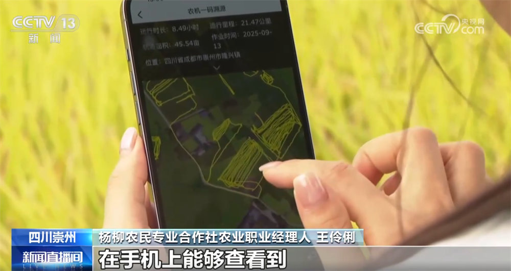 杨柳农民专业合作社农业职业经理人王伶俐称:“我们在收割机上安装了北斗导航,收割机在田间行走的轨迹可以通过我们的手机看得非常清楚。如果收割机有割得不干净的地方,我们就可以及时发现并进行补割。在手机上能够查看到田间农作物长势的情况,现在是颜色变黄了,意味着可以开始收割了。”