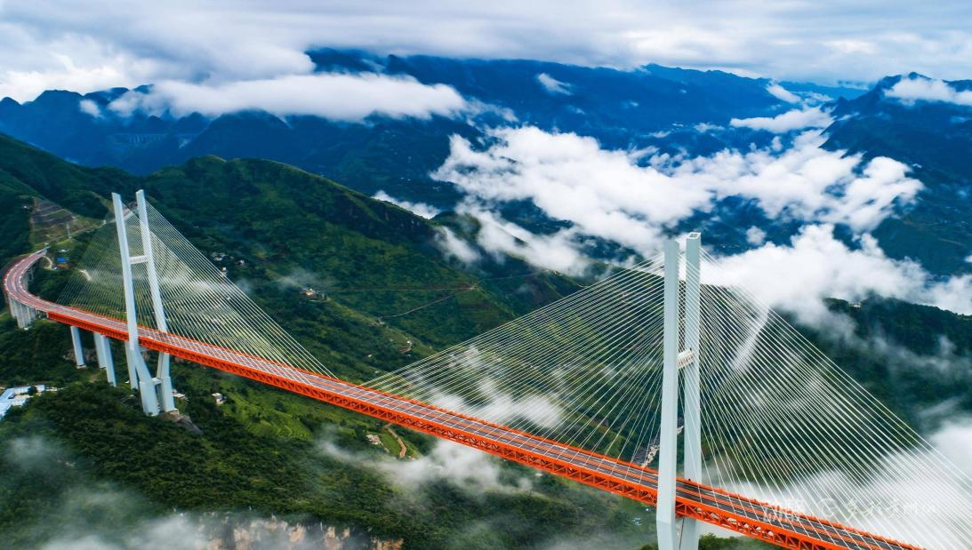 位于贵州省与云南省交界处,大桥全长1341.4米,因桥面到江面的距离高达565.4米而在当时荣获“世界第一高桥”的称号。大桥的建成通车,使云南宣威到贵州六盘水的车程从此前的5个小时左右缩短为1个多小时。