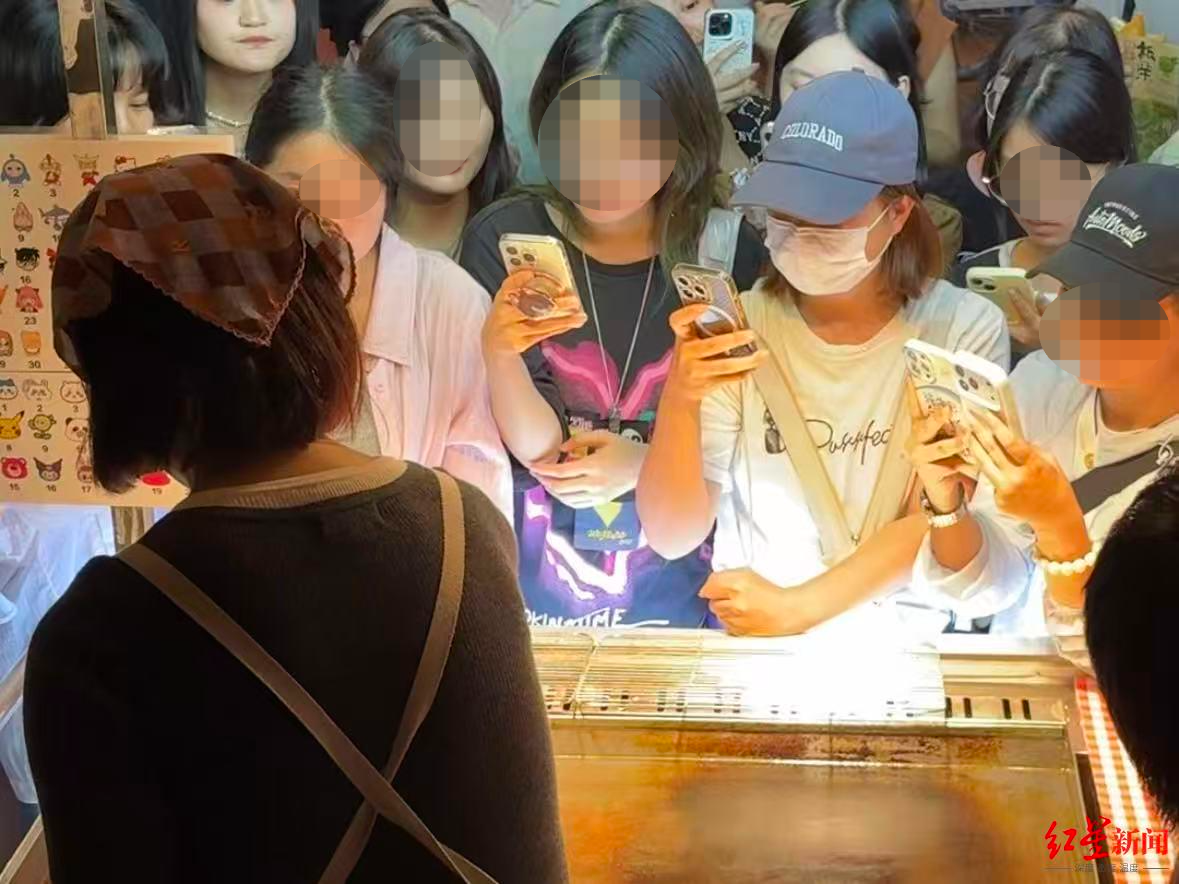 红星新闻记者看到,小曾制作卡通煎饼就如同在作画。她按照食客提供的图片勾勒边框,短短几十秒就能精准捕捉卡通形象的特征。Hello Kitty的可爱、哪吒的小辫子、可爱的labubu——每个形象的神韵就在这流畅的线条中定格。