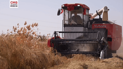 与此同时,当地的1600余亩水稻也迎来收获,大型收割机正在金色稻田中穿梭作业,一片丰收盛景。当地依托丰富的水资源、适宜的土壤与气候条件,为水稻生长提供良好条件,预计每亩地产量在650公斤以上。