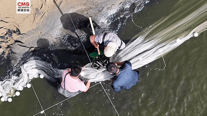 在且末县水产养殖基地里,工人们正捕捞乌鱼、沙锥鱼等海产。当地通过盐碱水还原海水技术,成功实现沙漠海鲜养殖,规模达500亩以上,成活率达到96%。