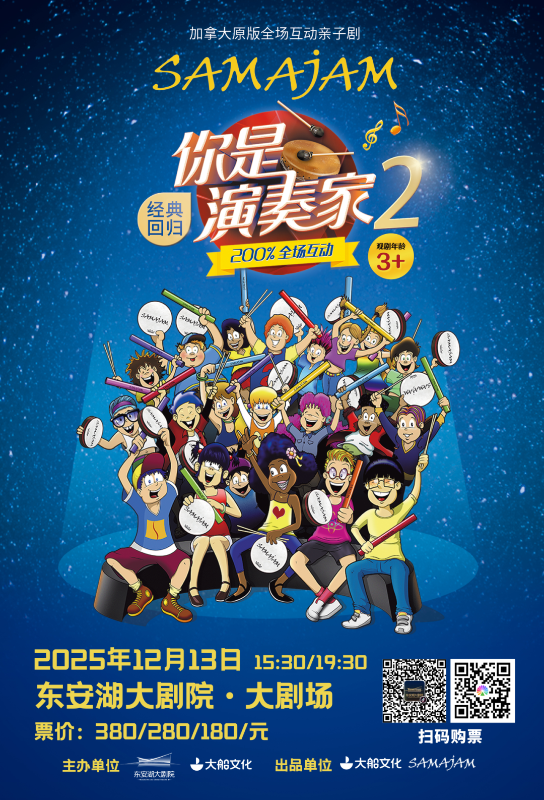谁的童年不需要一场酣畅淋漓的音乐冒险?谁的周未不渴望轻松带娃又收获满满?风靡北美的全场互动亲子剧《你是演奏家2》来东安湖大剧院啦!以口语化英语交流,动感音乐启蒙而风靡北美地区,受到万千家长和孩子们的喜爱与追捧。这部充满能量感和热情的现场互动舞台剧,将会带给你不同以往的全新打击乐体验和200%的参与感。
