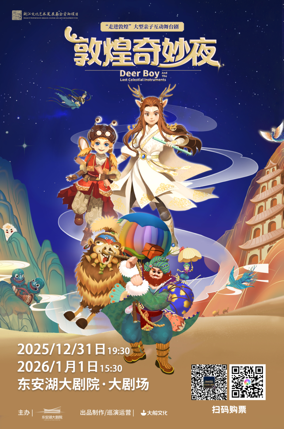 新年狂欢第一站!东安湖大剧院精彩上演《敦煌奇妙夜》,亲子必打卡的奇幻舞台!由迪士尼《狮子王》音乐总监Michael Brennan为本剧创作磅礴大曲,中西合璧,仙乐声声。曾为音乐剧《猫》中文版和迪士尼音乐剧《美女与野兽》中文版等著名剧目编舞的郭祯容老师,不仅为人物设计了丰富有趣的肢体动作,还让飞天走出壁画,惊艳四座。大型木偶,机巧道具,千年敦煌,绮丽展现,全场互动,温情相伴!
