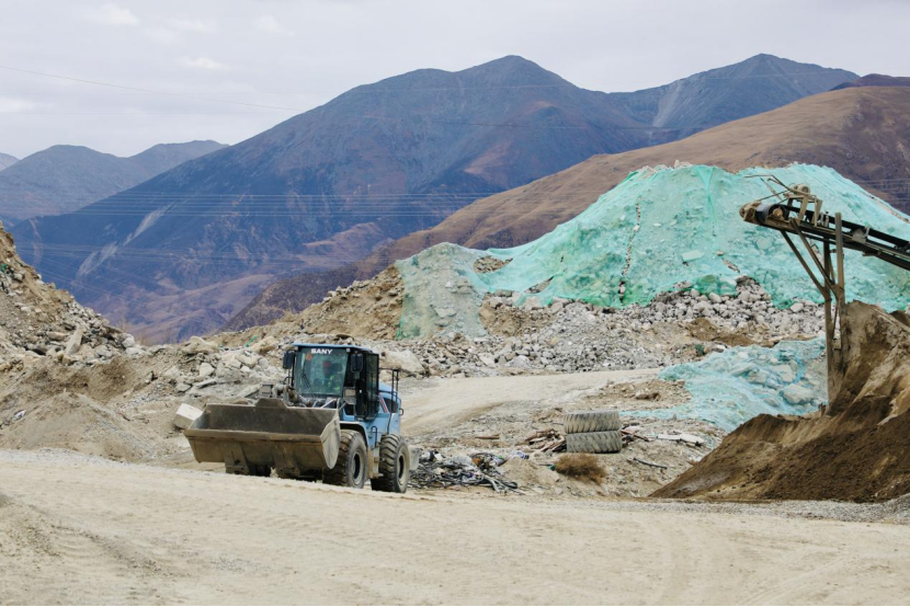 图为厂区内工人开着推土机在工作。次仁罗布 摄