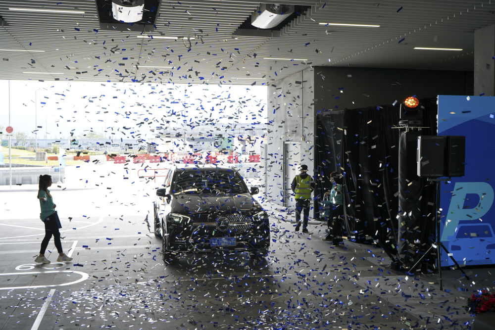 11月15日上午,香港机场管理局在香港口岸自动化停车场举办欢迎仪式,迎接“粤车南下”旅客。新华社发(郭辛 摄)