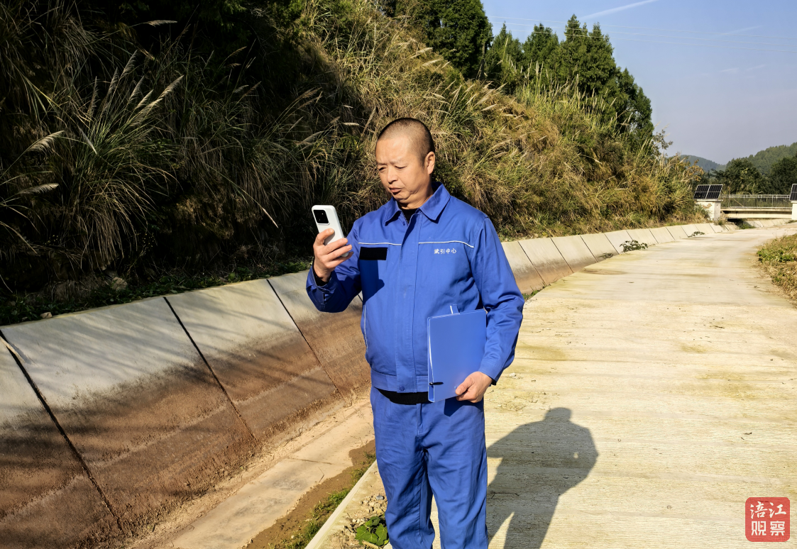 ▲协水员邓波通过“智慧灌区”APP上报巡渠信息