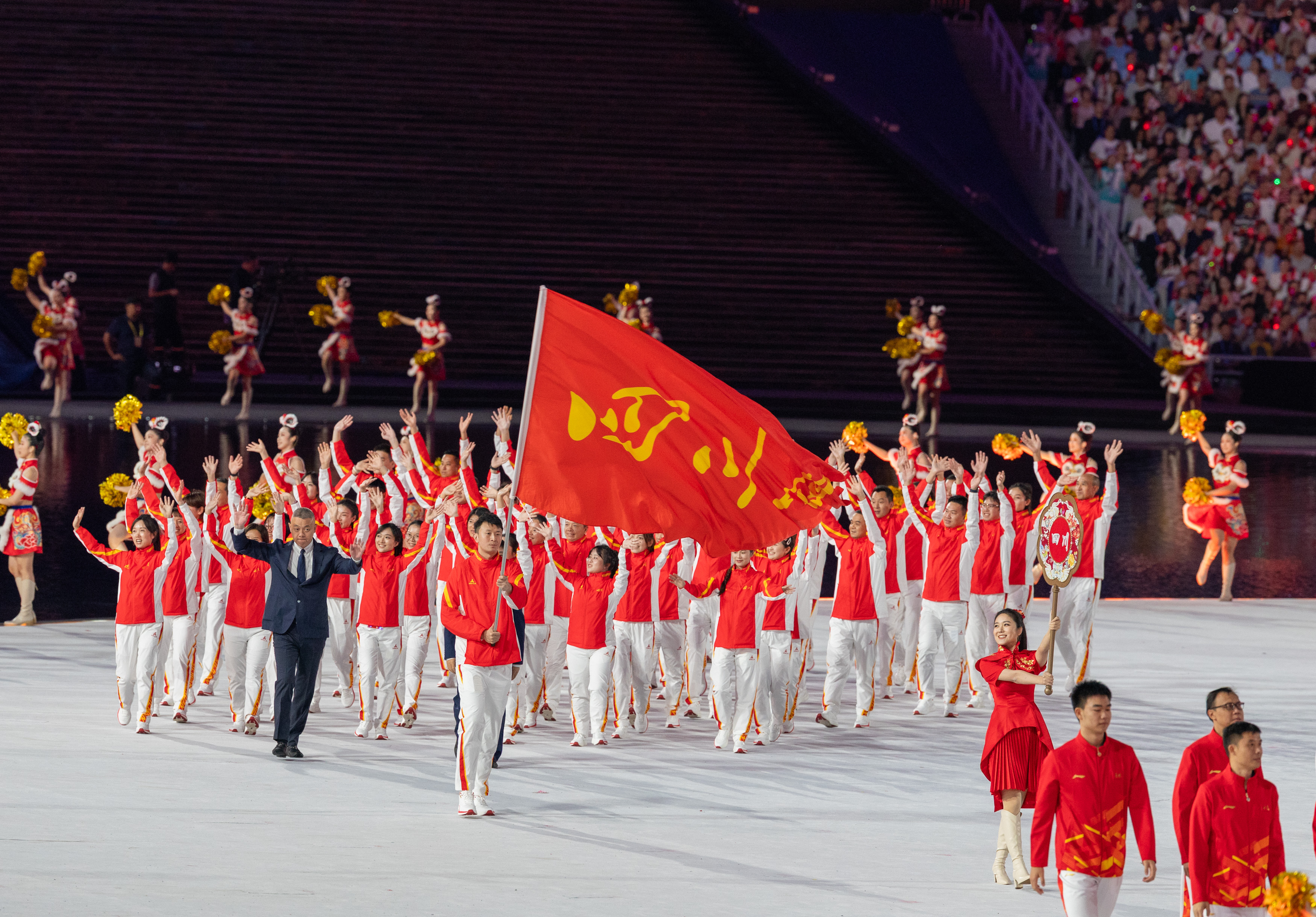 赛场上,铁人三项运动员林鑫瑜抽筋后坚持完赛、跆拳道选手宋洁带伤出战等事迹,生动诠释了“爱祖国、雄川体、闯新路、争第一”的四川体育精神。