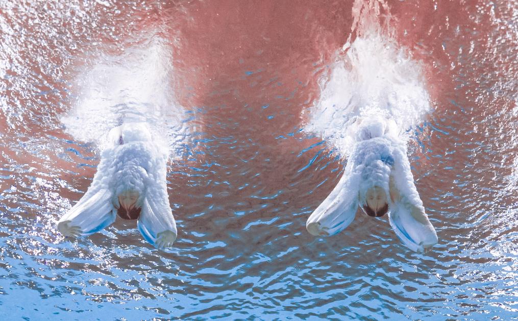 11月6日,上海队组合陈芋汐/掌敏洁在女子双人10米跳台决赛中。