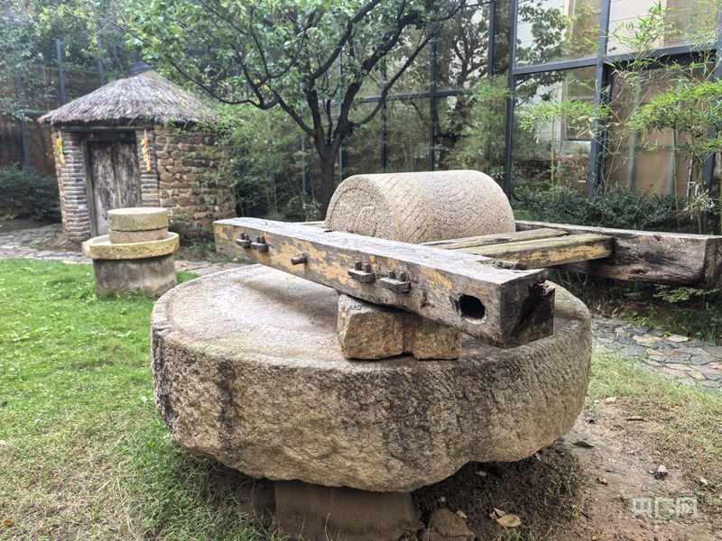 地雷战纪念馆馆藏石雷和制作炸药的石碾(央广网记者 刘佳音 摄)