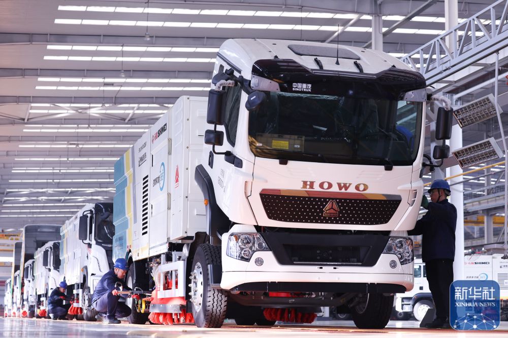 ▲12月15日,在河北省石家庄市的冀中装备石煤机公司,工人在组装新能源环卫车。新华社发(梁子栋摄)