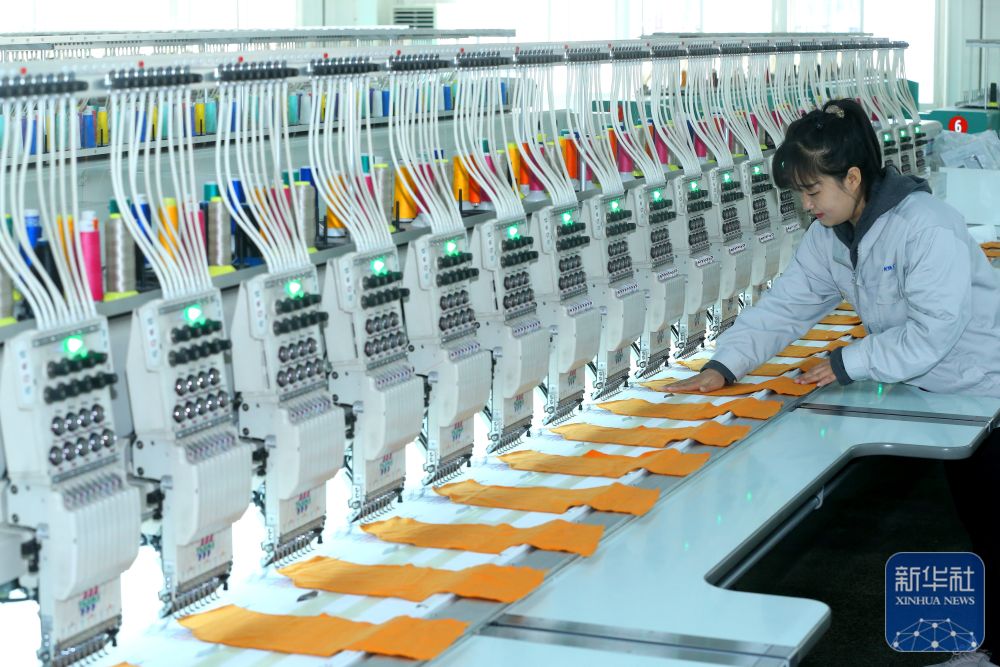 ▲12月15日,山东省青岛市即墨区即发集团员工在生产服装绣花产品。新华社发(梁孝鹏摄)