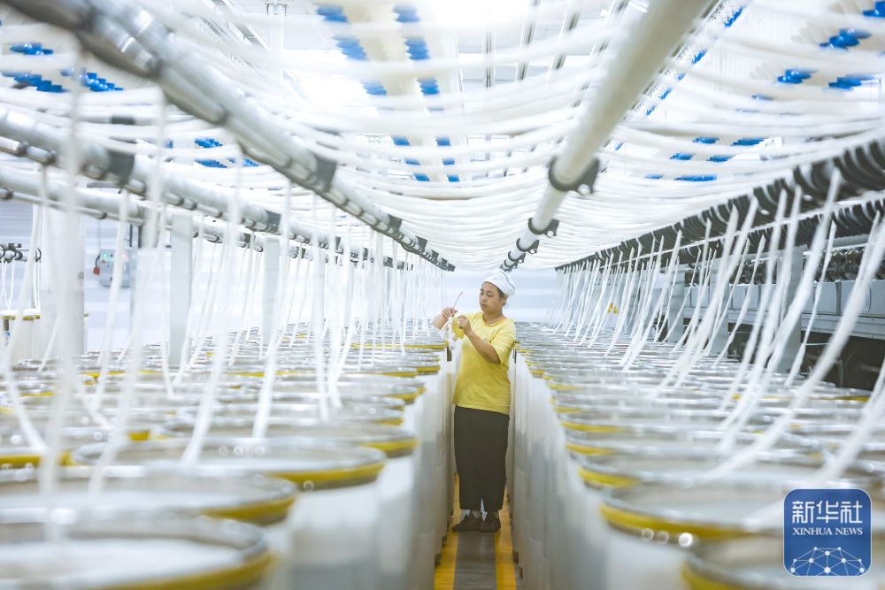 ▲12月15日,工人在江苏省泰州市姜堰区三水街道江苏泰达纺织科技有限公司智慧纺纱车间忙碌作业。新华社发(顾继红摄)