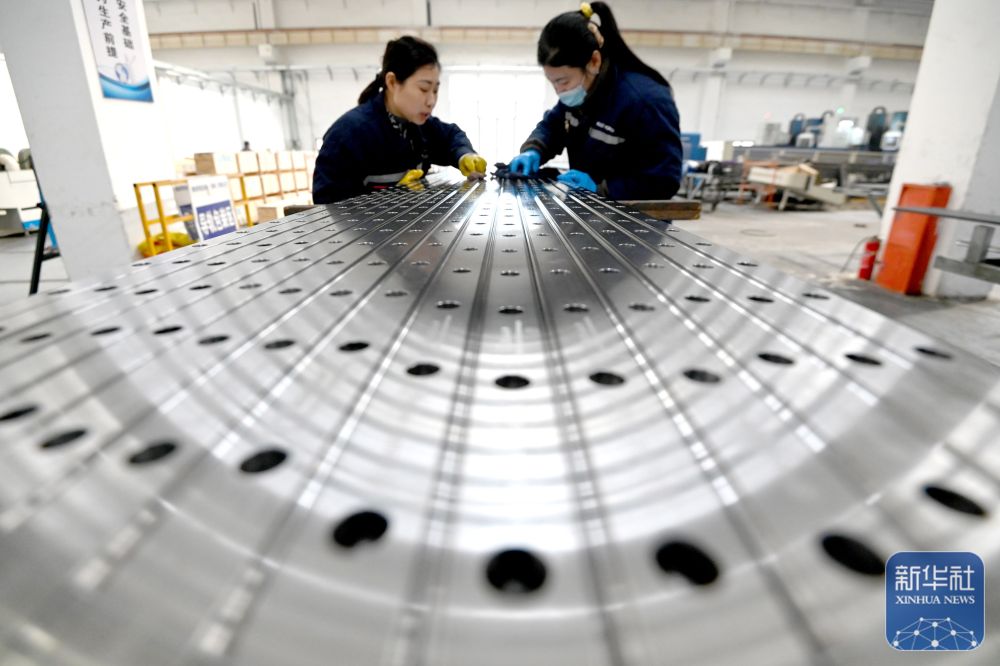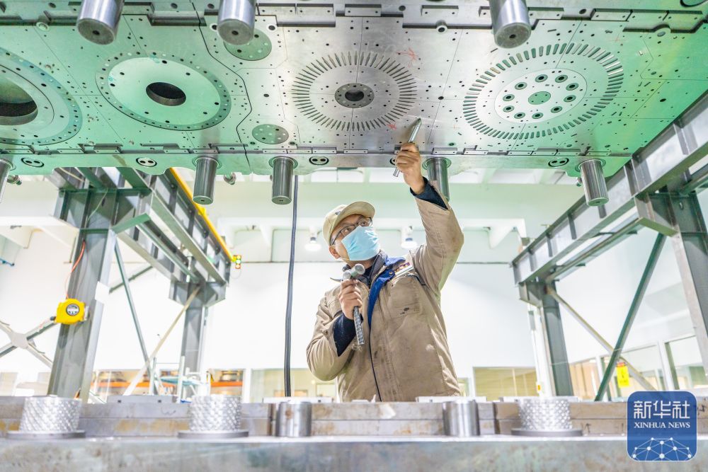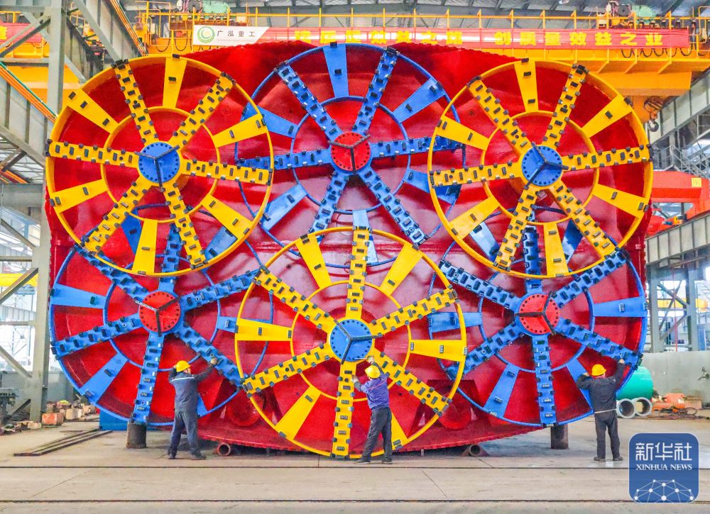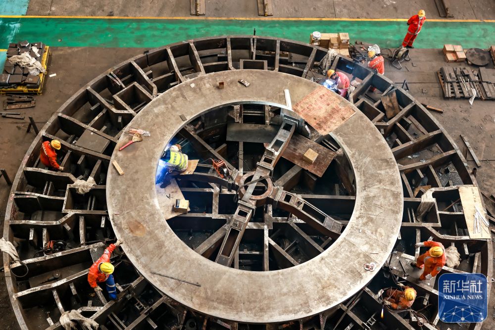 ▲12月15日,中铁科工集团武汉江夏制造基地技术工人对盾构机配件进行装配作业。新华社发(赵军摄)