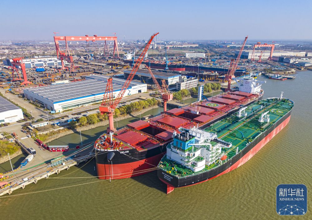 ▲这是12月14日拍摄的位于江苏省江都经济开发区的扬州中远海运重工有限公司生产厂区(无人机照片)。新华社发(任飞摄)