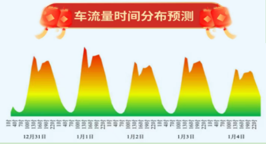 预测节前出城流量高峰期为2025年12月31日16时至22时及2026年1月1日上午8时至12时,返程流量高峰期为2026年1月3日16时至22时。