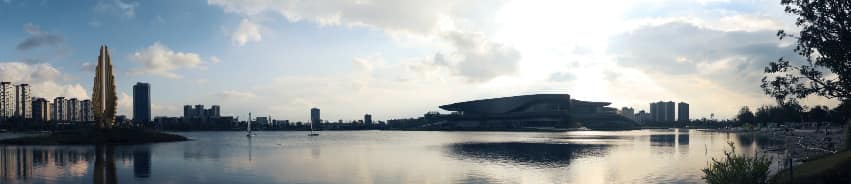 成都科幻馆与静谧的菁蓉湖(毛雪 摄)