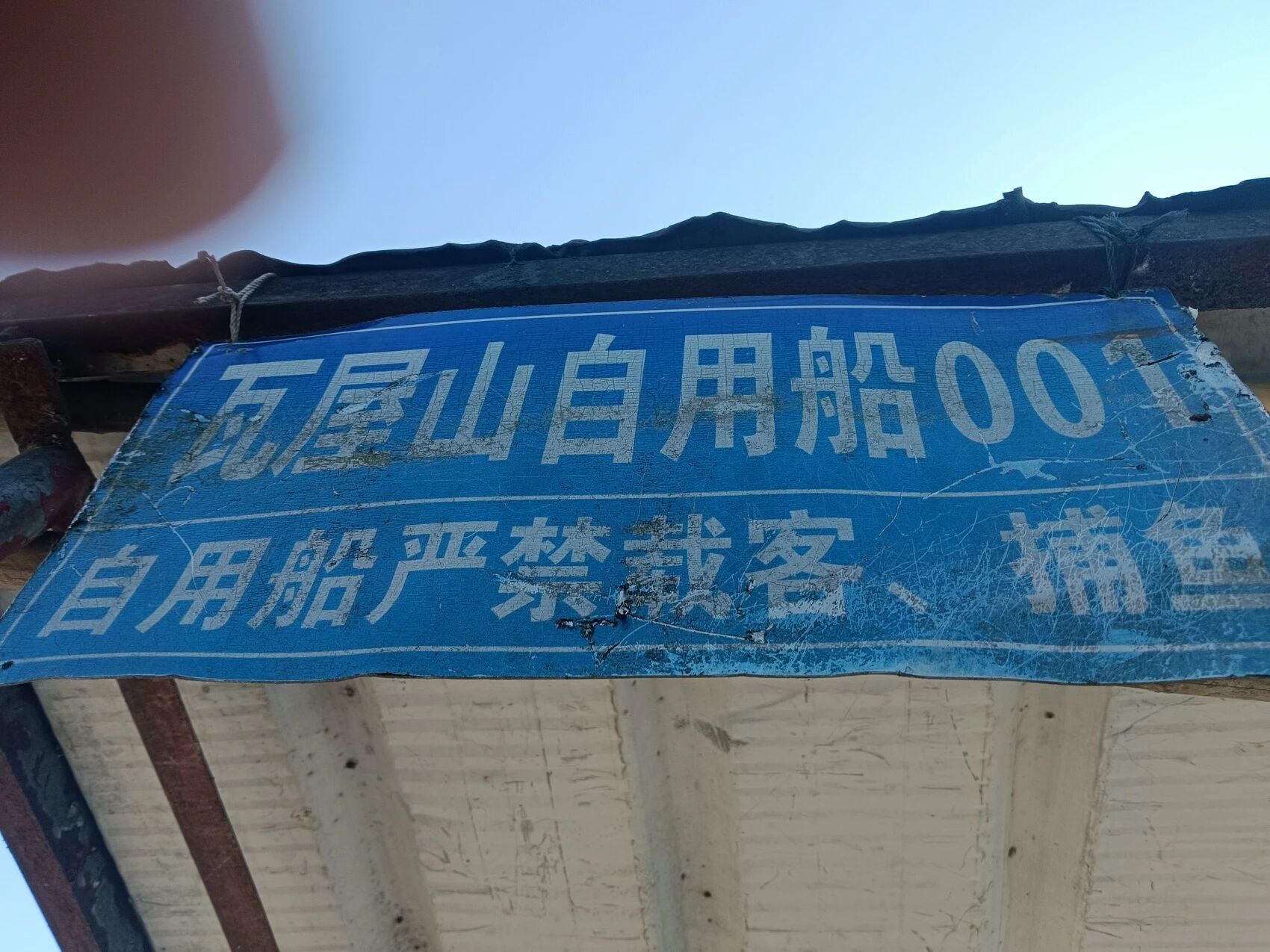 一艘村民自用船上挂有“瓦屋山自用船001 自用船严禁载客、捕鱼”的字样。